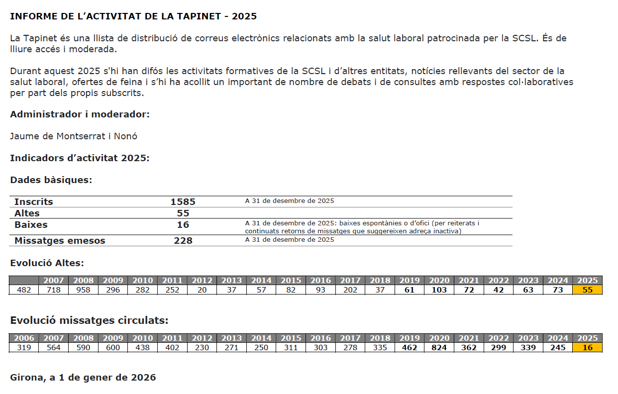 d'activitat del 2024 de la llista de distribució en salut laboral